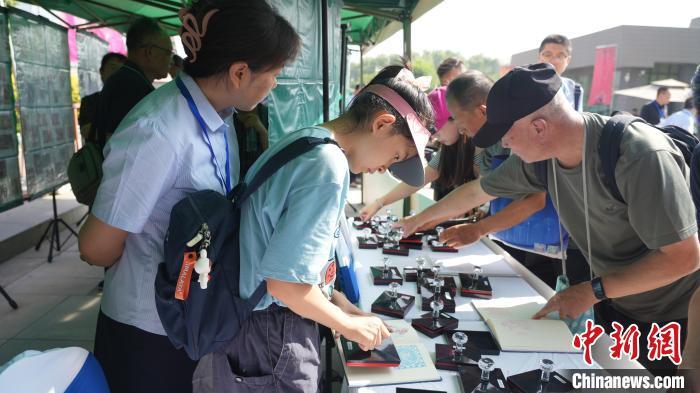 8月3日,《莫高窟(二)》特種郵票首發儀式上,民眾在蓋郵戳和紀念戳。戴文昌 攝
