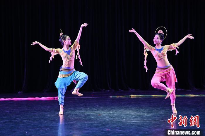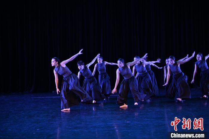 9月6日,由甘肅省人民政府臺灣事務辦公室、西北民族大學聯合舉辦的“‘尋甘同味·舞樂敦煌’第七屆臺灣大學生敦煌文化研習營”結營式在甘肅蘭州西北民族大學舉行。來自臺灣中國文化大學、臺灣藝術大學、臺灣體育運動大學與西北民族大學的65名師生在結營式上,合作進行了舞蹈音樂創作成果展演,展示了傳統與現代舞蹈的完美融合。圖為當日進行的舞蹈音樂創作成果演出。中新社記者 李亞龍 攝