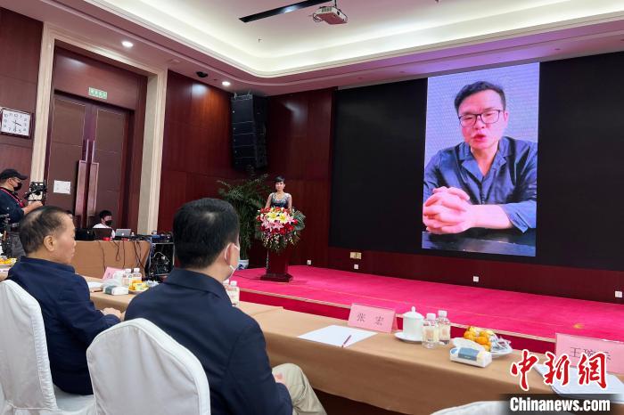 唐帥通過在線視頻發言?!∨诵衽R 攝