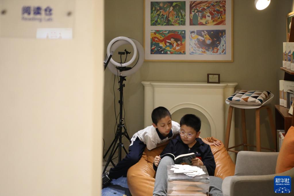 4月1日,在甘肅省蘭州市的讀者出版集團數字閱讀中心讀者小站,小朋友在多功能閱讀倉讀書。新華社記者 馬希平 攝