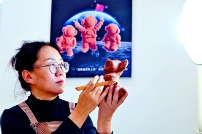 內斂安靜的“有愚”、長發飄飄的“九曲”、瞪眼齜牙的“八怪”、貌如蓮花的“鰱喜”……色如行云,線走流水,形貌精美,黃河的故事被魯婷巧妙繪制在不起眼的黃河石上,成為一件件惟妙惟肖的藝術佳作。