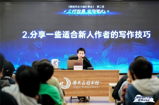 本次分享會再次邀請知名網絡文學作家天蠶土豆作為主講嘉賓,與讀者們面對面交流,分享他的寫作技巧和創作趣事,在互動環節解答讀者對網絡文學作品的好奇。活動現場熱情積極,在靜安區圖書館充滿書卷氣的環境里展現著獨特魅力。